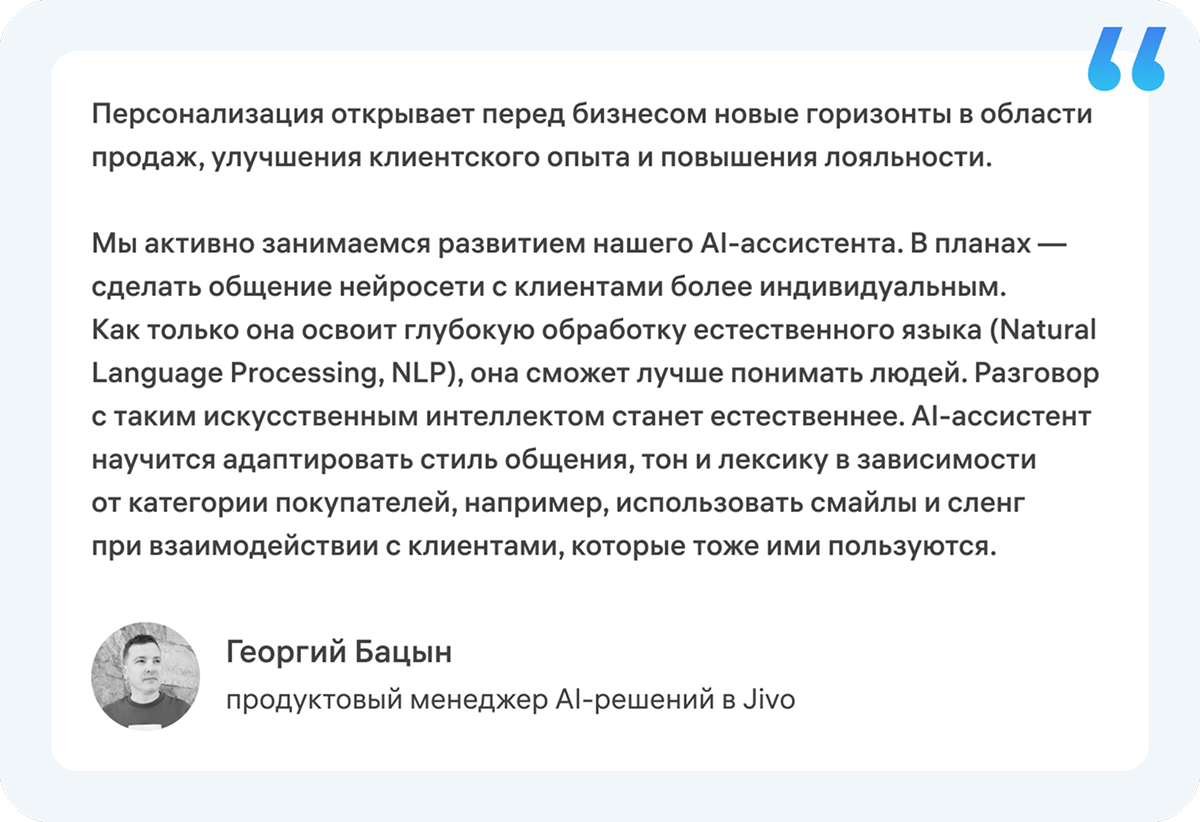 - Более глубокую персонализацию ⎻ ассистенты станут еще лучше анализировать предпочтения и параметры покупателя.